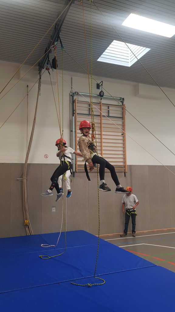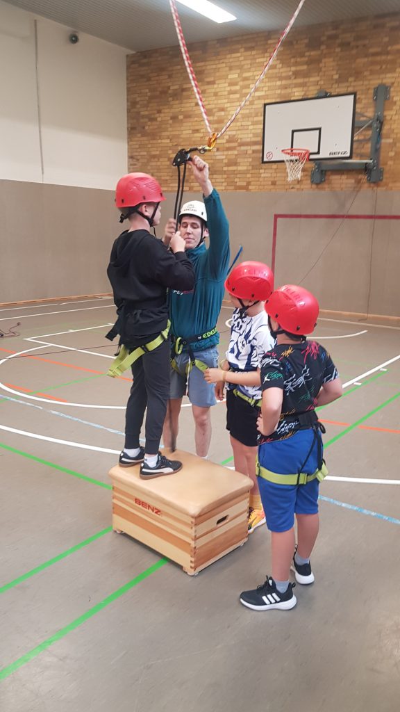 Ein Team wächst zusammen durch gemeinsame Aktionen. Deshalb ist das Kletterprojekt ist wichtiges Element im Projekt Null. Alle Stammgruppen haben in diesen ersten Tagen im Schuljahr die Möglichkeit, in der Turnhalle OVERBECK, die zu einem tollen Kletterparcours umgewandelt ist, am Kletterprojekt teilzunehmen. Im Vordergrund stehen die Entwicklung der individuellen Fähigkeit, das Erleben von Kompetenz und Herausforderung und das Zusammenwachsen zu einer starken Gemeinschaft.