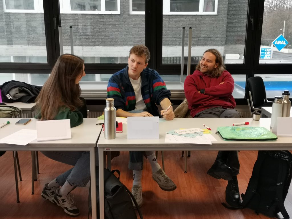 - Onboarding-Workshop II. mit der IUS, ehemaligen Praxissemesterstudierenden und dem Team der Wissenschaftlichen Leitung der IUS zur Reflexion der ersten Erfahrungen in der IUS, Diskussion möglicher Fragen und der Forschungsvorhaben im Studienprojekt. (Ort: Räumlichkeiten des Teams der Wissenschaftlichen Leitung der IUS in der Aachener Straße 2021, 2. OG).